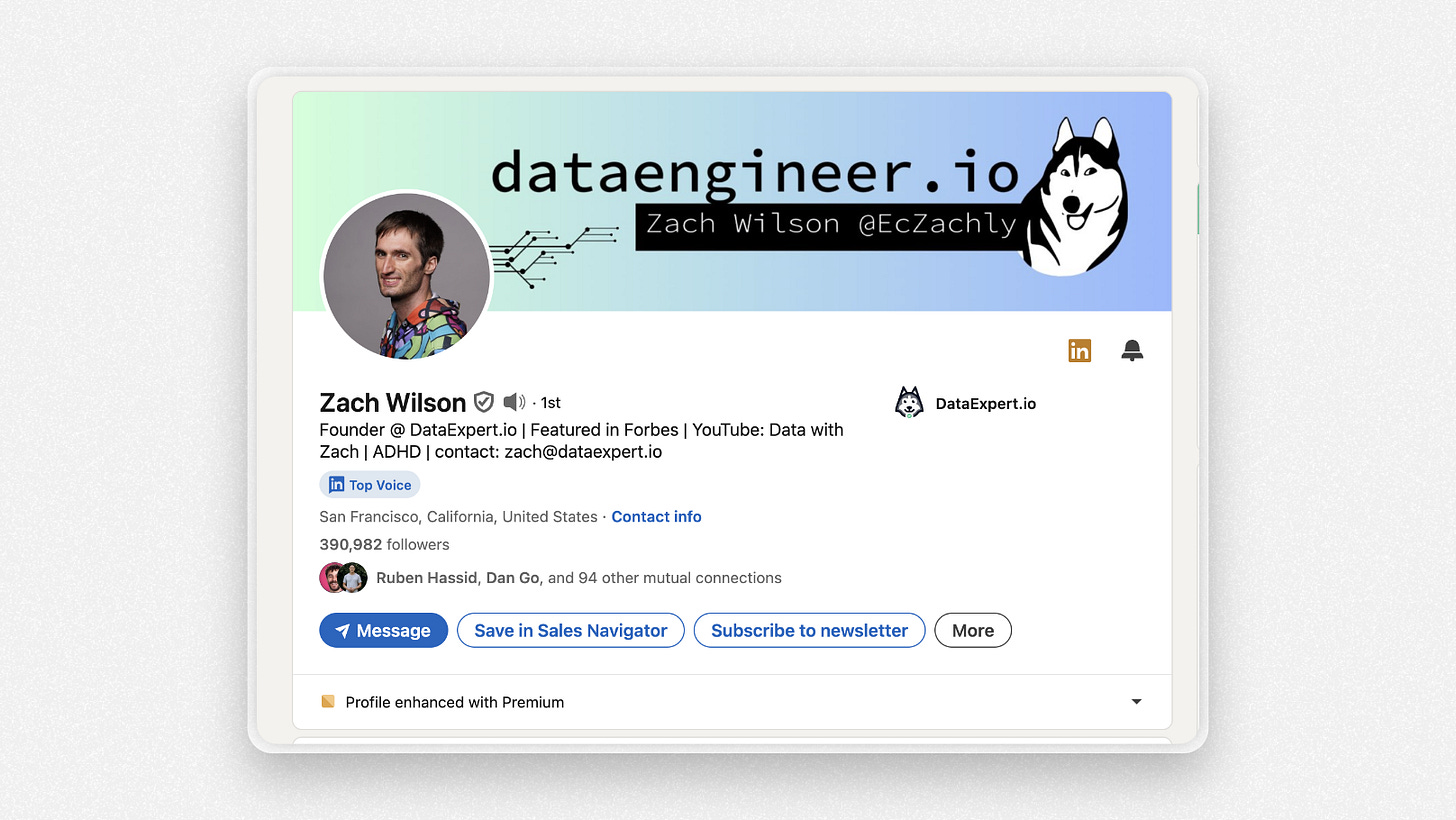 Approaching niching this way means you’ll build a high-quality audience that’s ripe for monetization, just like Zach Wilson did with Data Engineering.