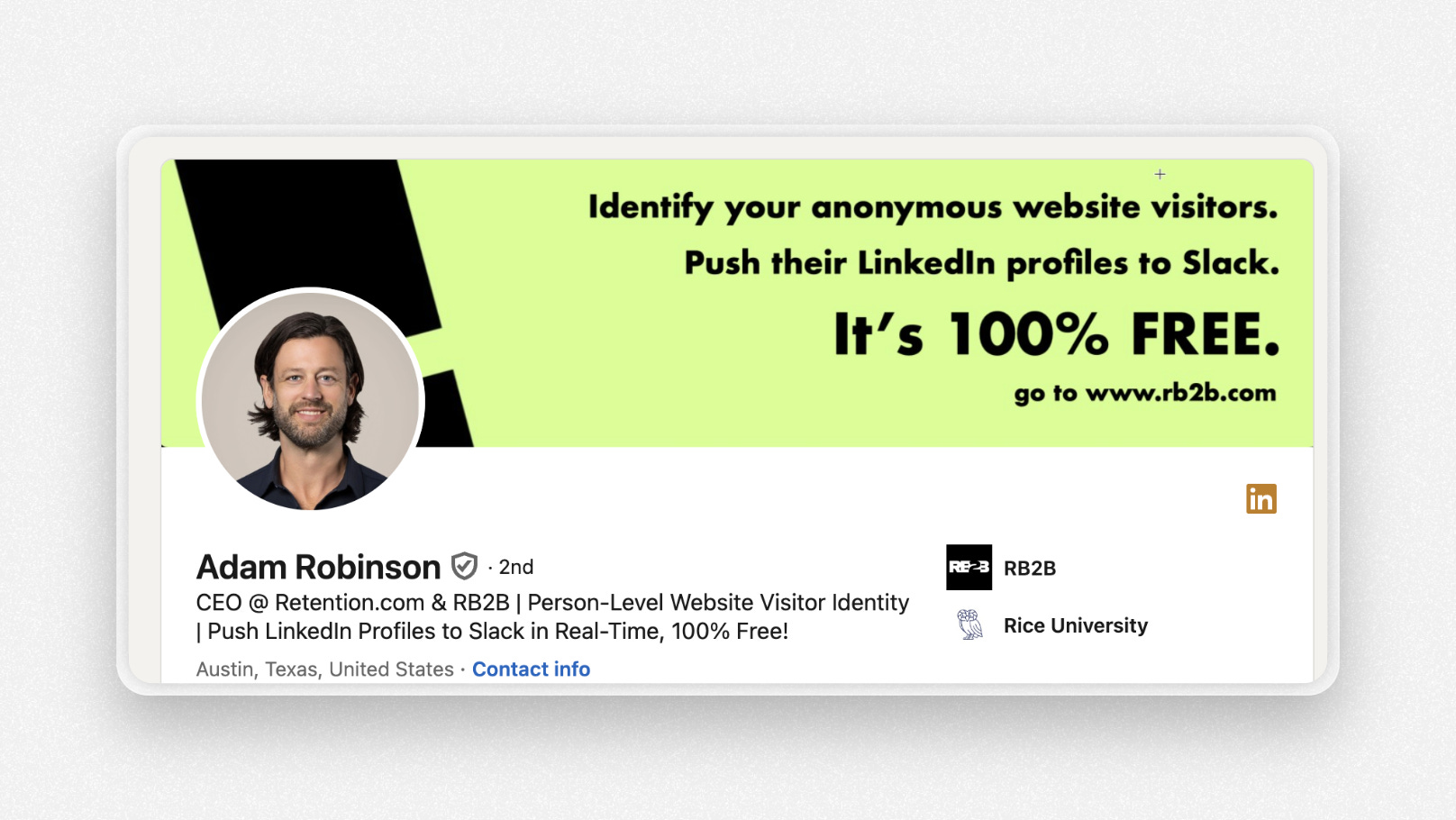 Adam Robinson, who, by the way, is one of the best examples of someone who absolutely understands how to leverage LinkedIn to its fullest potential, has a really excellent tagline.