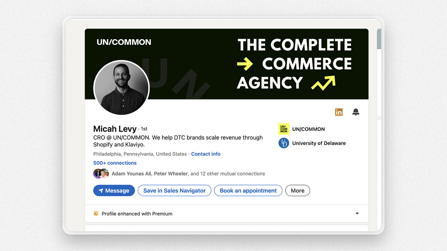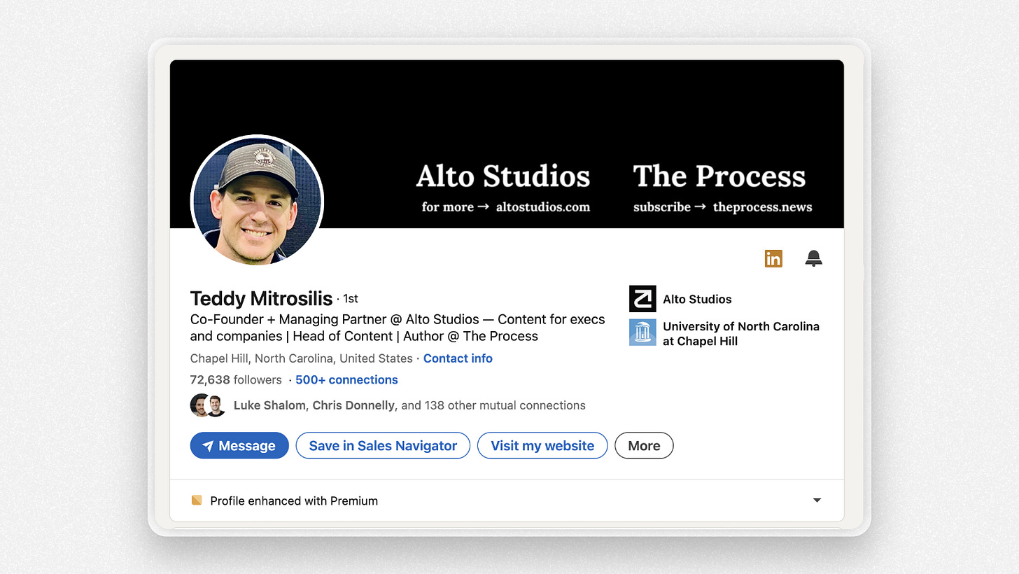 Leading with the “Founder” title provides some context of who I am. Then, “the highest level of LinkedIn strategy” talks about what I actually do.