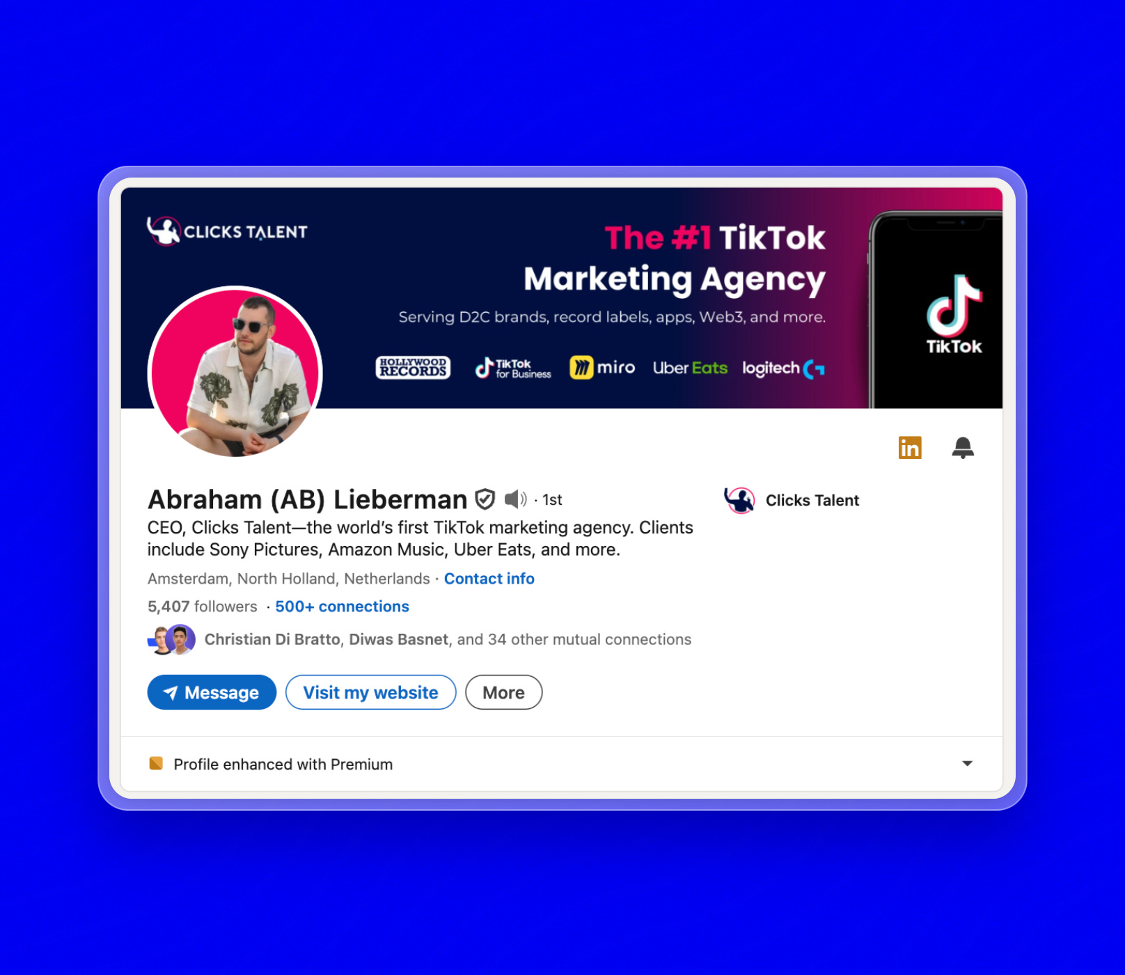 AB's profile does this masterfully by leading with results and backing them up with recognized brand associations.